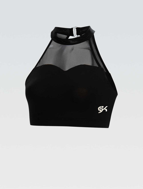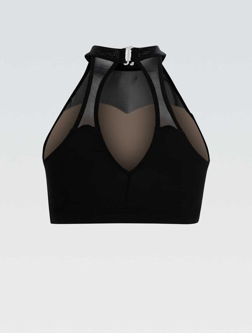 Feminine and fun - the Sweet Key crop top features a sweetheart neckline and a keyhole back that are as fun as they are elegant - this style is featured in black DryTech and black mesh.