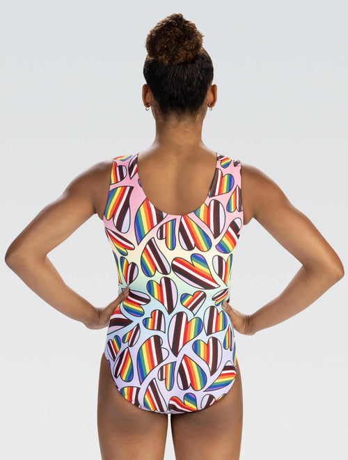 Embrace the vibrant spirit of Pride with the Heartfelt Tank Leotard, a celebration of love and diversity in a kaleidoscope of rainbow hearts. This leotard is a symbol of inclusivity, perfect for gymnasts who carry the spirit of unity and joy in their performances.